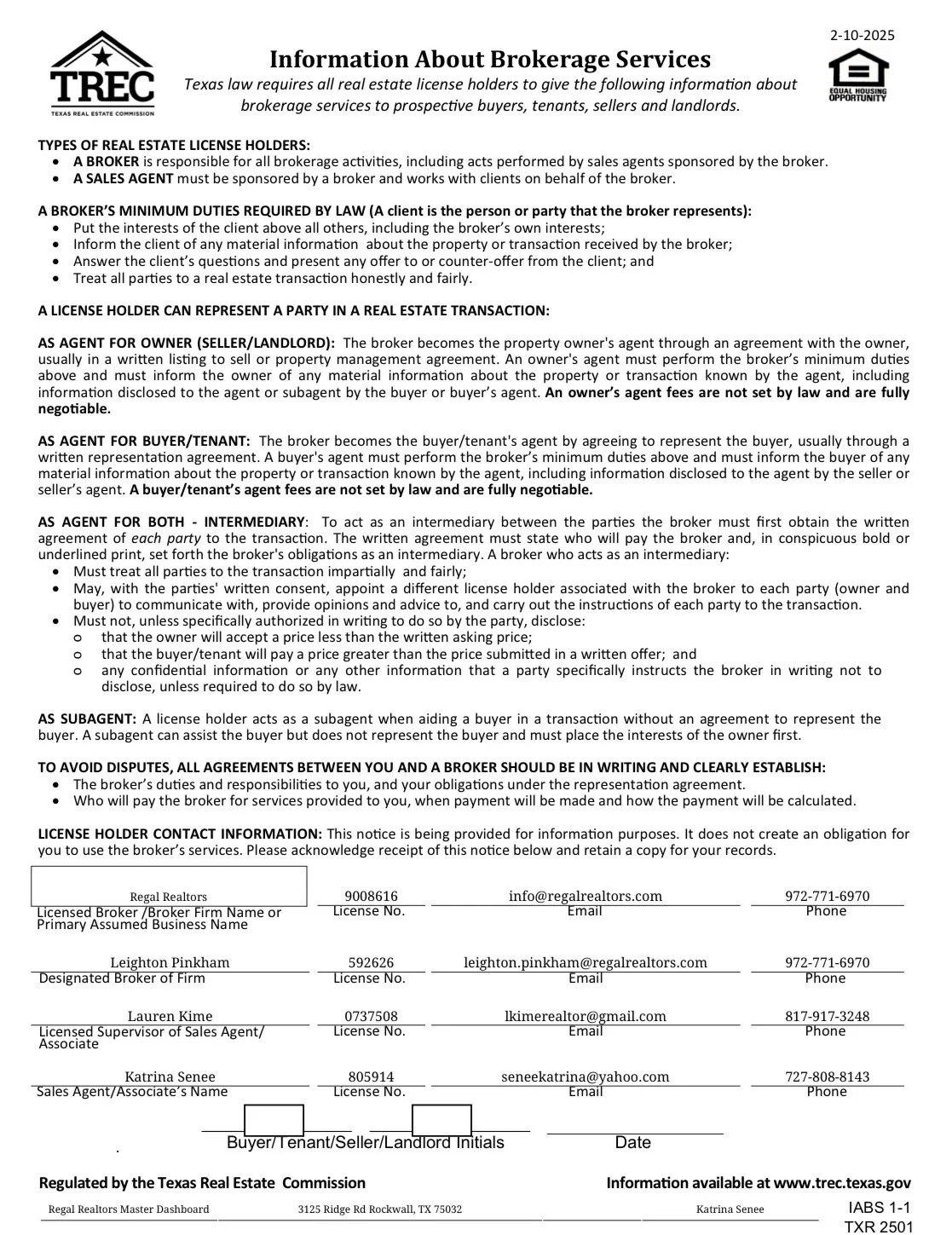 Information About Brokerage Services Texas Real Estate CommissionFind details on all things TREC in the PDF documents below. Subscribe Subscribe Subscribe Sign up with your email address to receive news and updates. Email Address Sign Up Thank you!